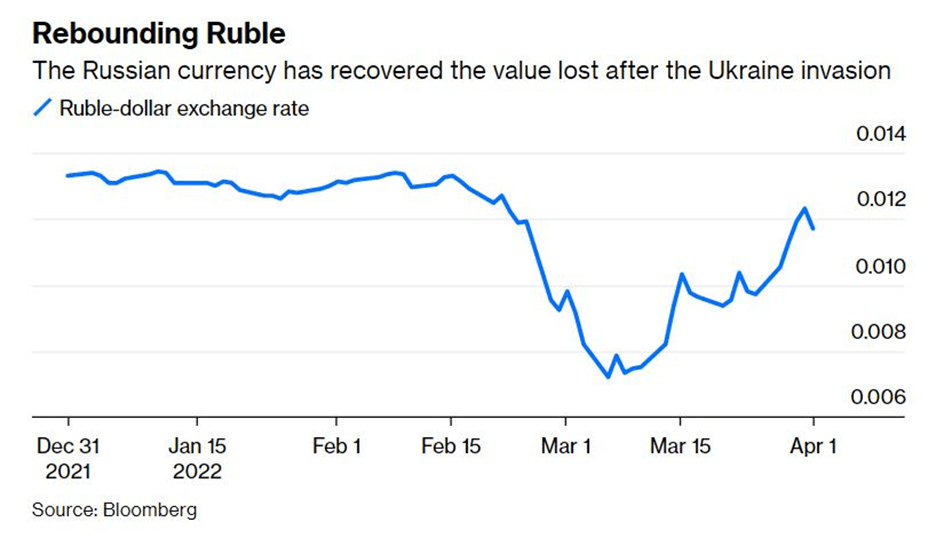 Nền kinh tế Nga chắc chắn đã bị ảnh hưởng nặng nề bởi các hạn chế của phương Tây, nhưng tôi vẫn giữ quan điểm rằng nó đã không bị ảnh hưởng đủ mạnh để chấm dứt chiến tranh. Chừng nào mà chính phủ Đức còn chống lại lệnh cấm vận đối với việc xuất khẩu dầu của Nga, Putin vẫn kiếm đủ ngoại tệ mạnh để duy trì nền kinh tế chiến tranh của mình. Bằng chứng thuyết phục nhất cho điều này là sự phục hồi đáng chú ý của tỷ giá hối đoái của đồng rúp với đồng đô la. Trước chiến tranh, một đô la đã mua 81 rúp. Sau cuộc xâm lược, tỷ giá hối đoái đã giảm xuống còn 140. Hôm thứ Năm, nó đã trở lại ở mức 81, chủ yếu phản ánh sự kết hợp của các khoản thanh toán với nước ngoài cho dầu khí và kiểm soát vốn của Nga.