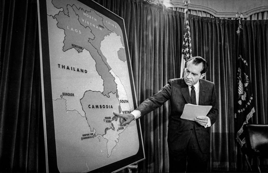 Tổng thống Richard Nixon trình bày chiến dịch oanh kích Campuchia vào năm 1970 tại Washington D. C. Nguồn ảnh: History/ Universal Images Group/ Getty Images