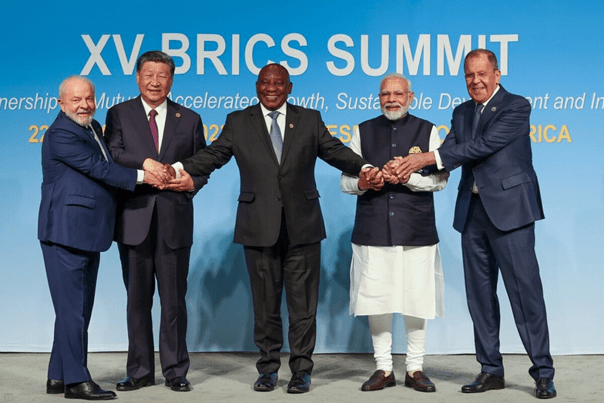 Các nhà lãnh đạo khối BRICS tại Johannesburg, Nam Phi ngày 23-8-2023. Nguồn: VP Thủ tướng Modi