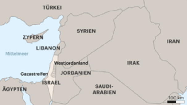 Bản đồ khu vực Trung Đông, nơi xảy ra xung đột trong nhiều thập niên qua. Nguồn ảnh: DPA-Infografik/ Deutschland radio