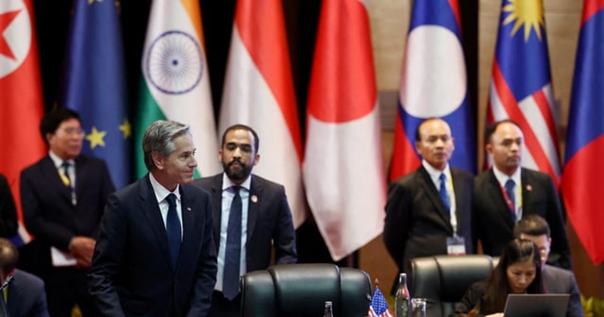 Ngoại trưởng Hoa Kỳ Antony Blinken tại Diễn đàn khu vực ASEAN, Vientiane, Lào, tháng 7 năm 2024; nguồn ảnh: Chalinee Thirasupa / Reuters